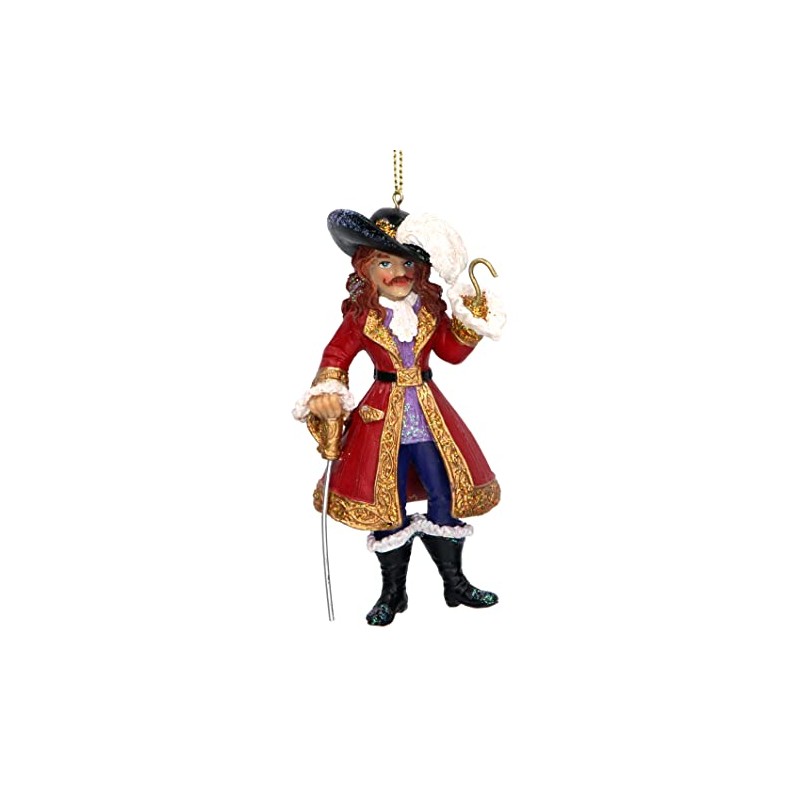 - Captain hook decoration with lots of swashbuckling detail and tied with gold twine to hang on your tree