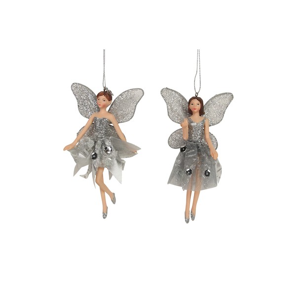 Gisela Graham Set of 2 Silver Fairy Christmas Tree Decorations