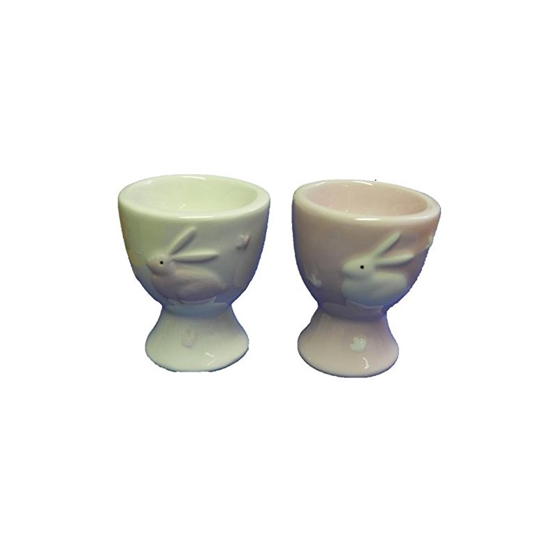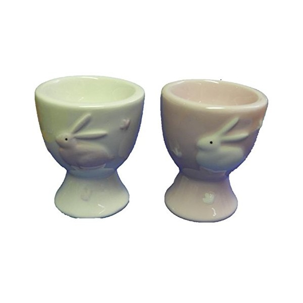 Gisela Graham Set of 4 Pink/White Ceramic Bunny Egg Cups - 2 assorted designs