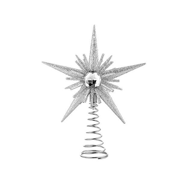 Gisela Graham Silver Glitter & Jewel Tree Top Star-15cm, Multi, one Size