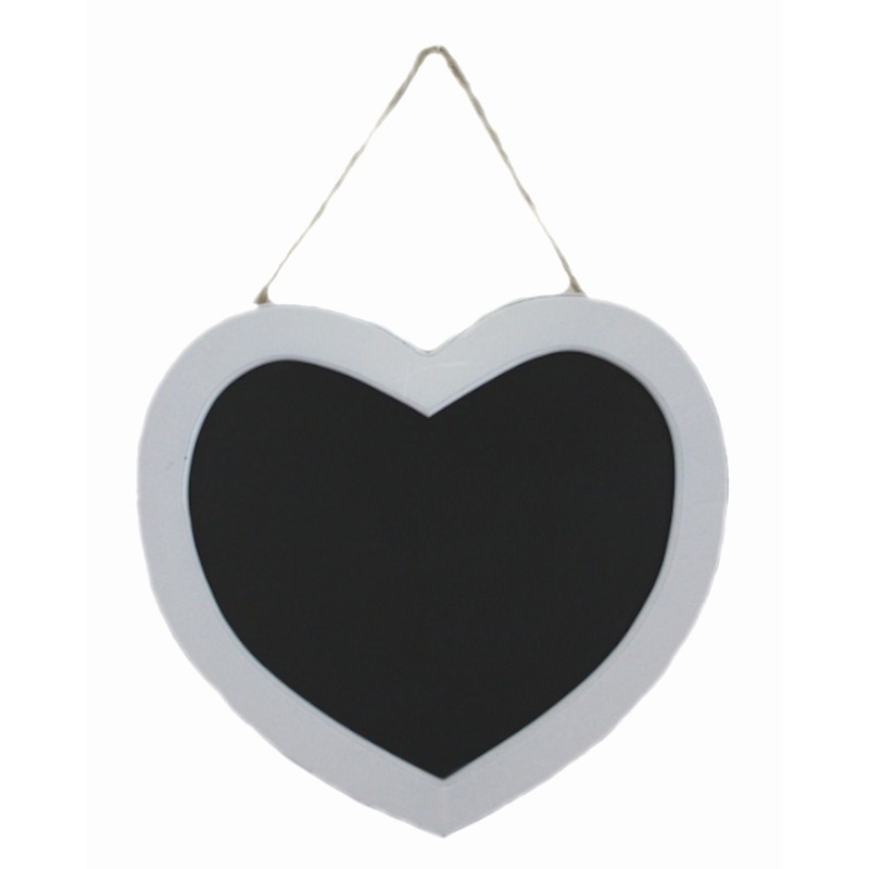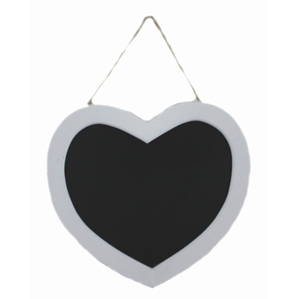 Shabby chic French style distressed look white hanging heart chalkboard by Gisela Graham. 30x28cm