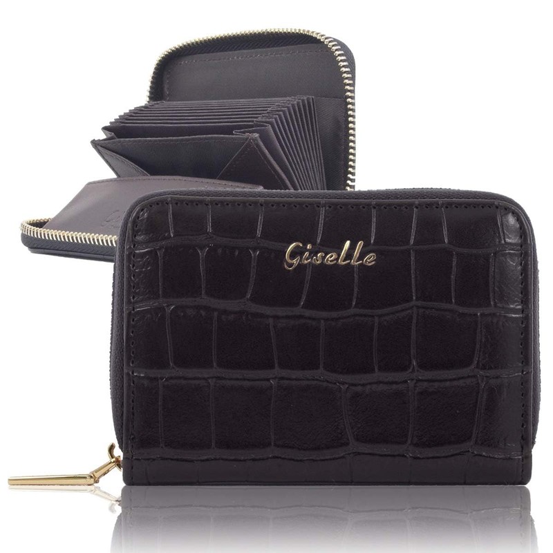 GISELLE Card Case, Coin Case, Coin Purse, Mini Wallet, Credit Card Case, Women's, Business Card Holder, Large Capacity, Anti-Skimming, Card Slot, Thin, Magnetic Protection, Croco Embossed, [Smooth