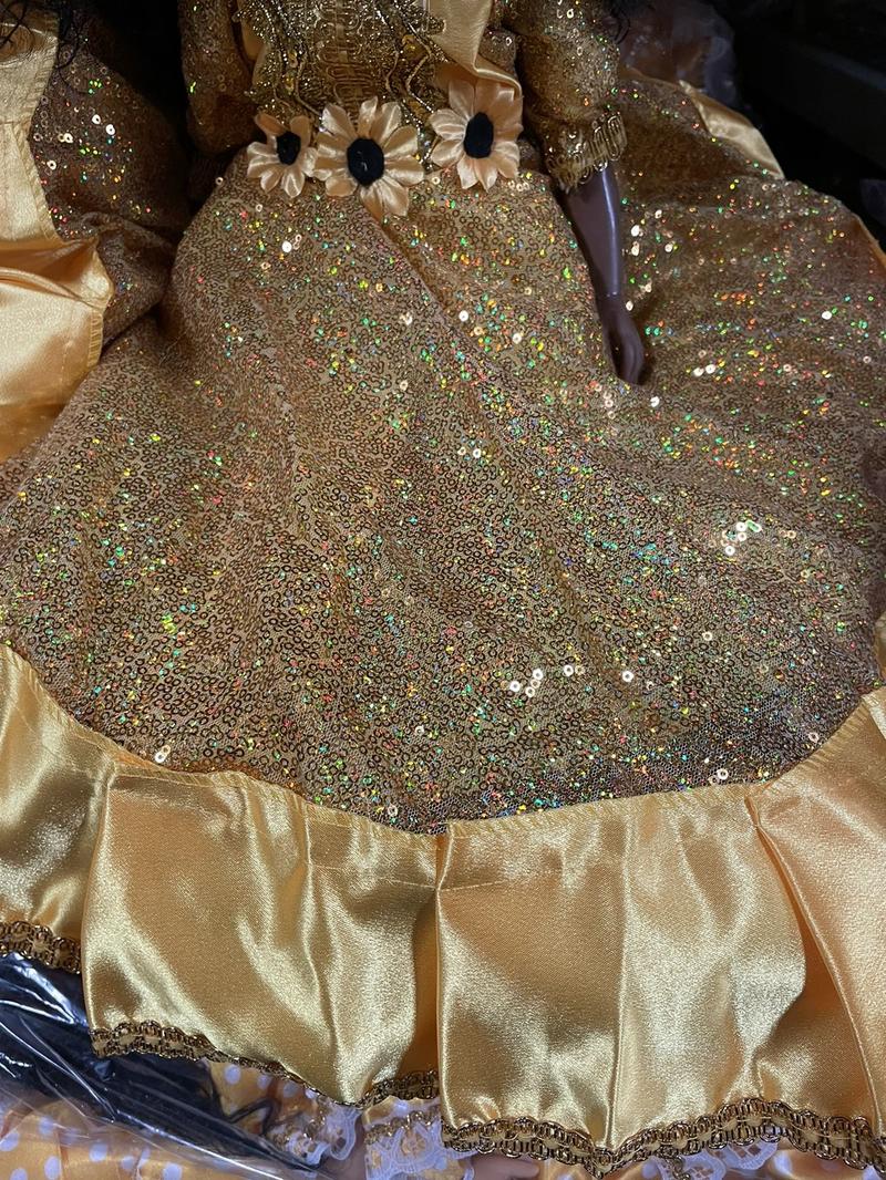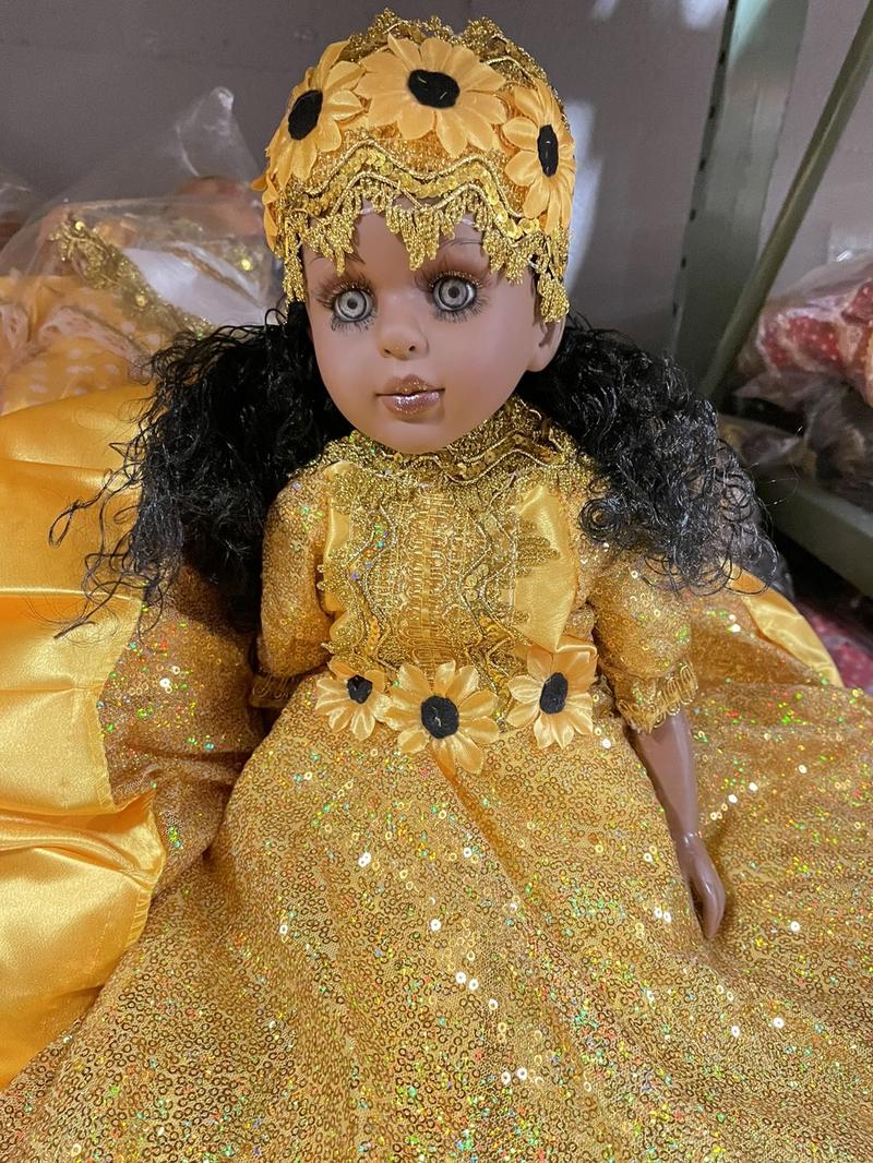 * Beautiful Yellow and Gold Dress: This doll features a stunning yellow and gold dress, adding a touch of elegance and charm to its overall appearance.