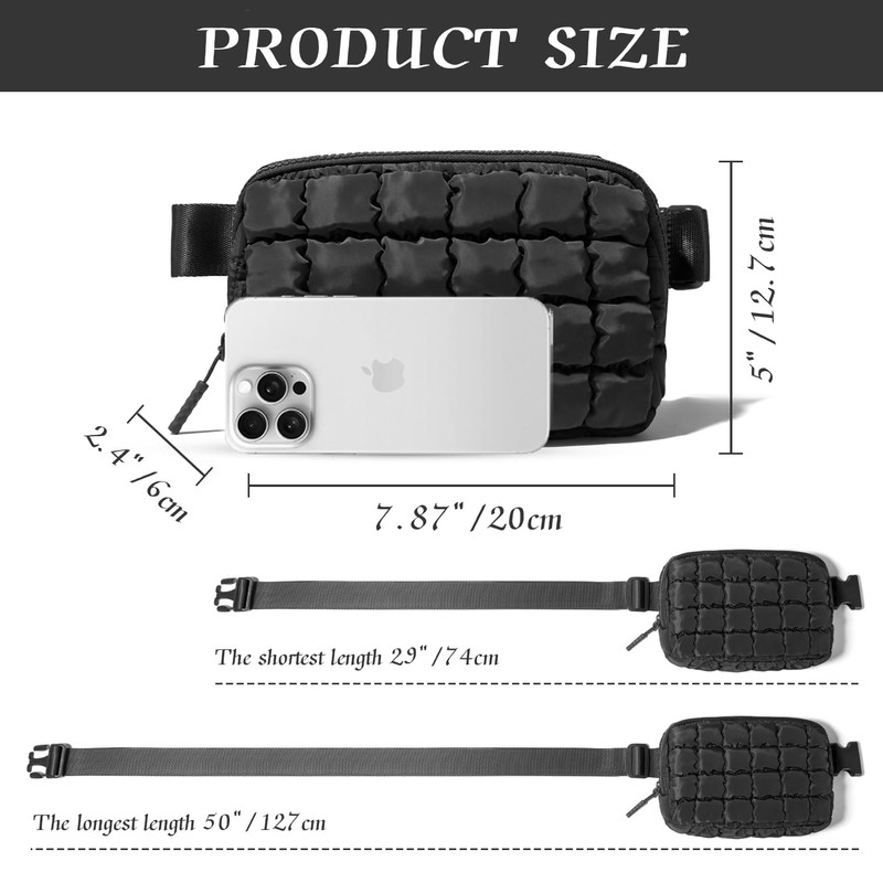 - [Trending Puffer Bag]: The puffer belt bag is made of high quality nylon material, which is comfortable to use and as soft as a cushion because the polyester lining is tear-proof and durable.