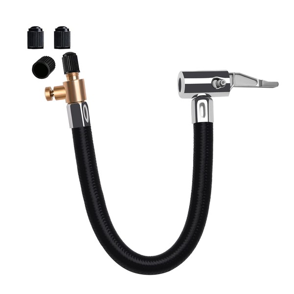 Givedoua Flexible Tire Valve Extension Adapter, Inflator Hose Adapter, Locking Air Chuck Quick Connect and Release, Pressure Adjustable Tire Inflator Pump Hose Adapter for Car Motorcycle Bike,1PC