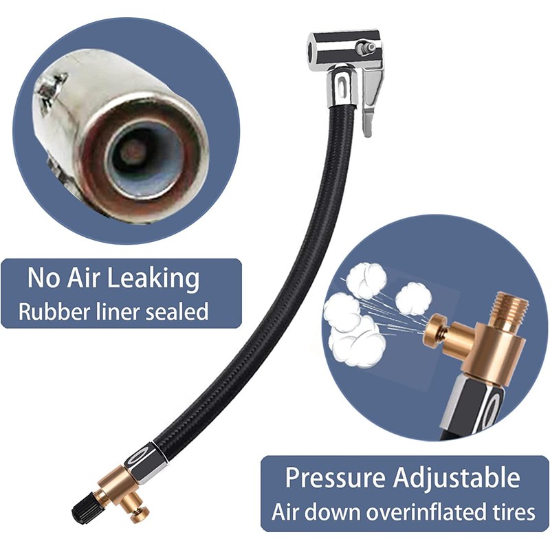 - 【Durable PSI 256】High quality strengthen nylon-wrapped rubber hose, durable and flexible. Rubber liner in the nozzle, airtight seal to tire valve stem,no air leaking.