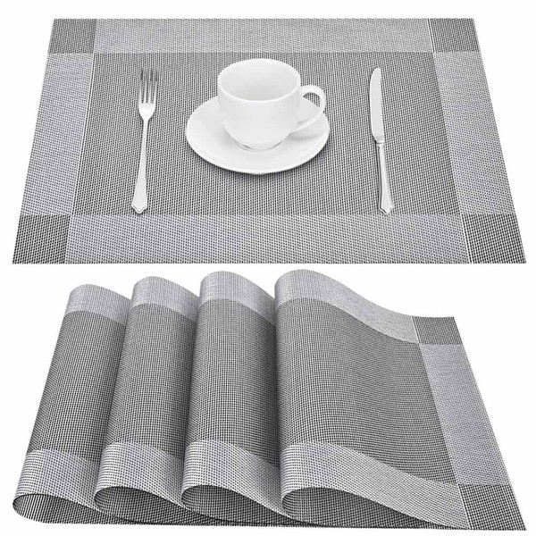 GIVERARE Placemats Set of 4, Heat-Resistant Woven Vinyl Placemat, Non-Slip Washable PVC Table Mat, Easy to Clean Premium Plastic Table Mats for Dining Table, Kitchen Table (Silver+Gray)
