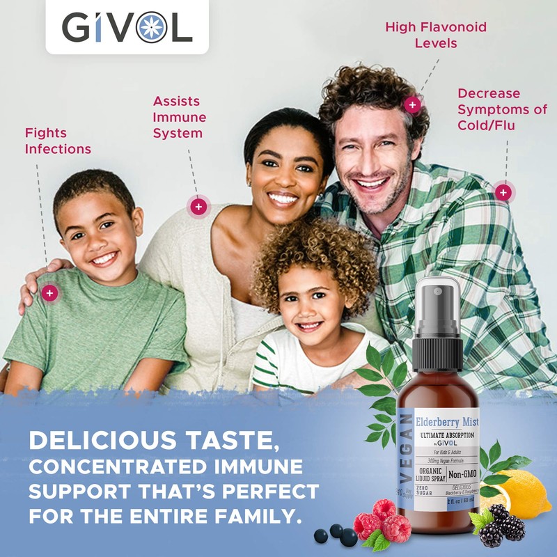 GIVOL, Organic Elderberry Mist-Sambucus Nigra (Extra Strength) Liquid Extract for Kids & Adults - Immune Boost - High Flavonoid Levels - Vegan Easy Absorption - - Non-GMO (3)