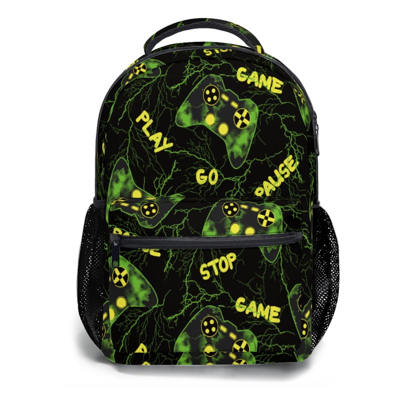 Giwawa Video Game Backpack Gamepad Controller Green Lightning School Shoulder Bookbag Large Capacity Multiple Pockets Daypack for Kids Girls Boys Teens Women Men Laptop Travel