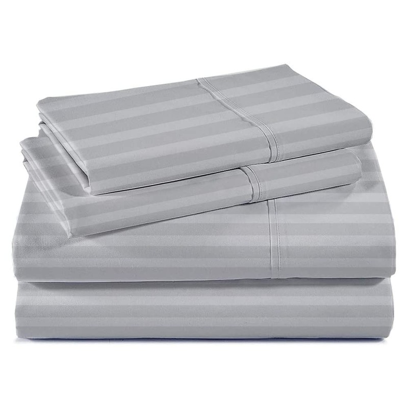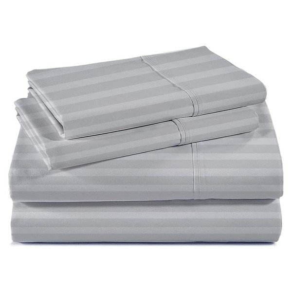 Giza Cotton Sheets Split King Sheets-Giza Cotton Sheets Split Split King Size Giza Sheets, 100% Long Staple Giza Cotton Split King Sheets (Split King Size, Light Grey Stripe)