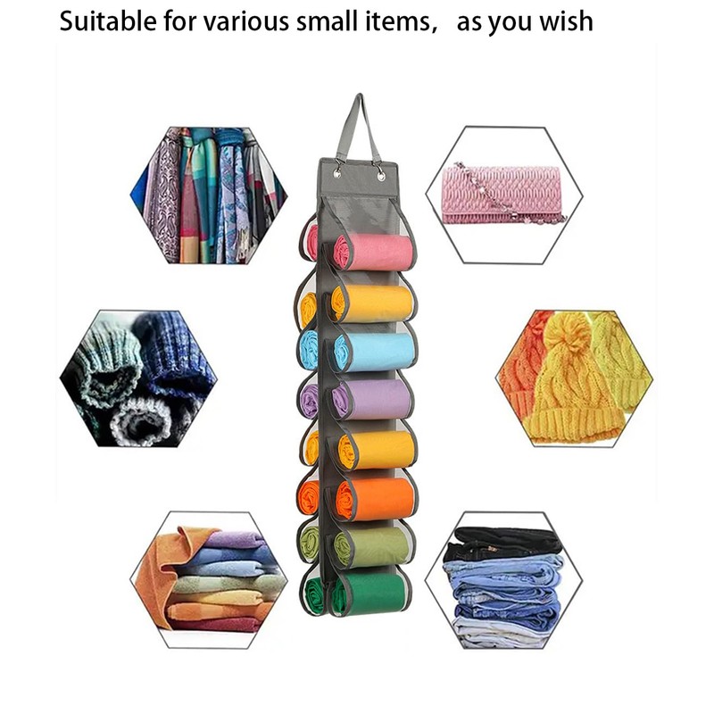 - Total 16-pocket hanging organizer in front and back, easily creating storage space and making your closet clutter free; conveniently keep your clothes and other items like glasses or pouch neat and organized.