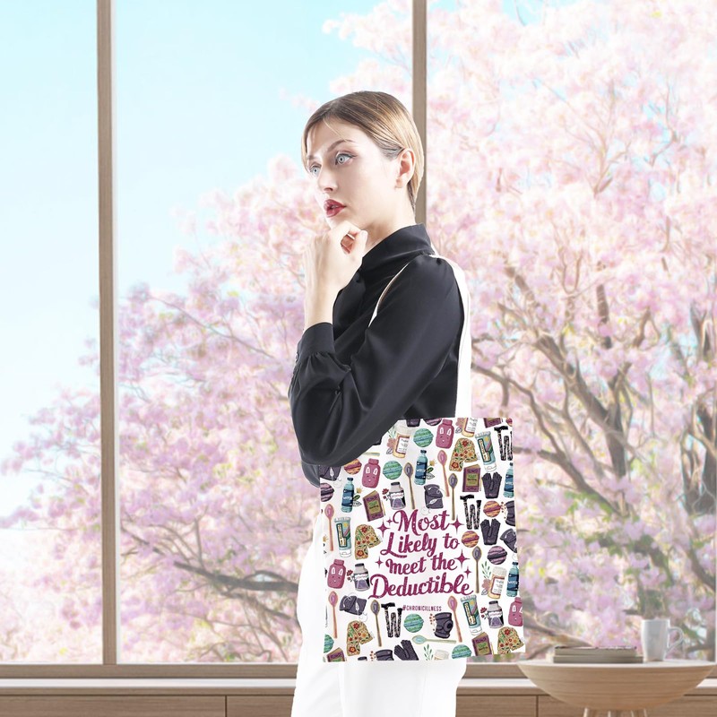GJTIM Chronic Illness Gift Medical Gaslighting Gift Most Likely To Meet The Deductible Warrior Sarcasm Tote Bag for Spoonie Friend (Chronicillness Tote)