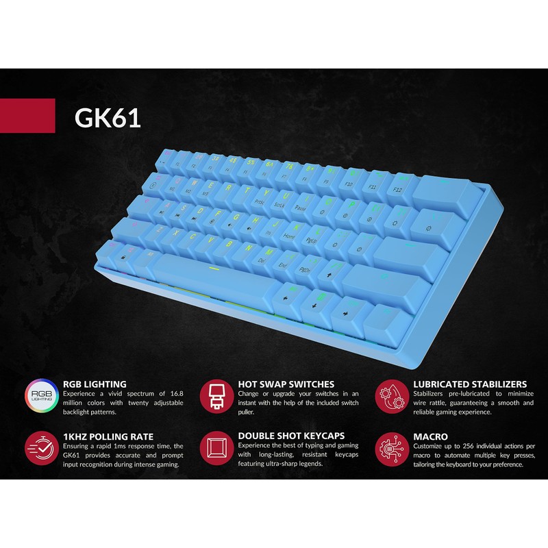 - ✅ 【ABS Doubleshot keycaps】The GK 61 doubleshot abs stock keycaps , change them at wishes thanks to the keypuller included to the package.