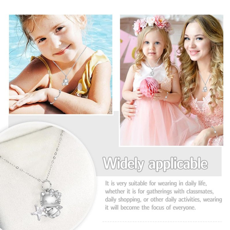 - Unique design: cute cartoon pattern of the very popular Kitty Kat, Kitty Kat with wings on her body, holds a sparkling white stone pentagram, especially in combination with radiant and bright zirconia, the effect is amazing. Chic necklaces and bracelets always radiate beauty and elegance.