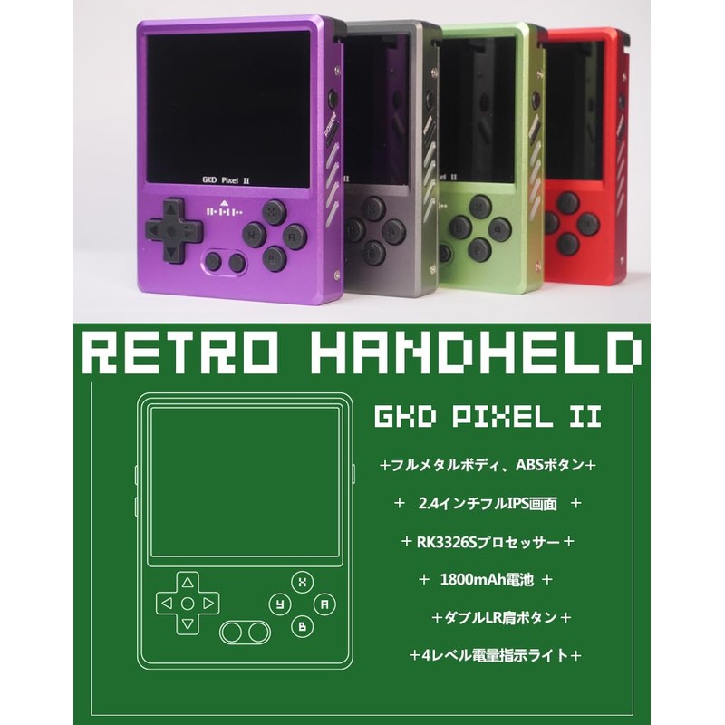 GKDPixel レトロポータブルゲーム機 CNCアルミニウム金属制 OpenSourceシステム 2.4インチフルIPSスクリーン 64GB グリーン