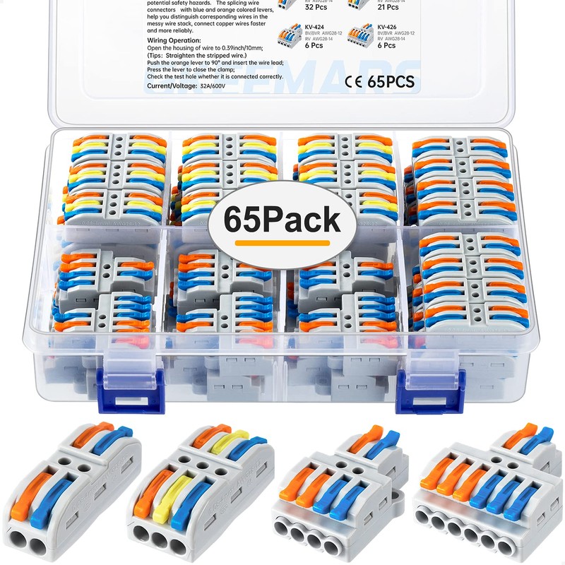 GKEEMARS 65 Pcs Compact Splicing Wire Connectors Assortment Pack, Quick Wiring Connector for AWG 28-12