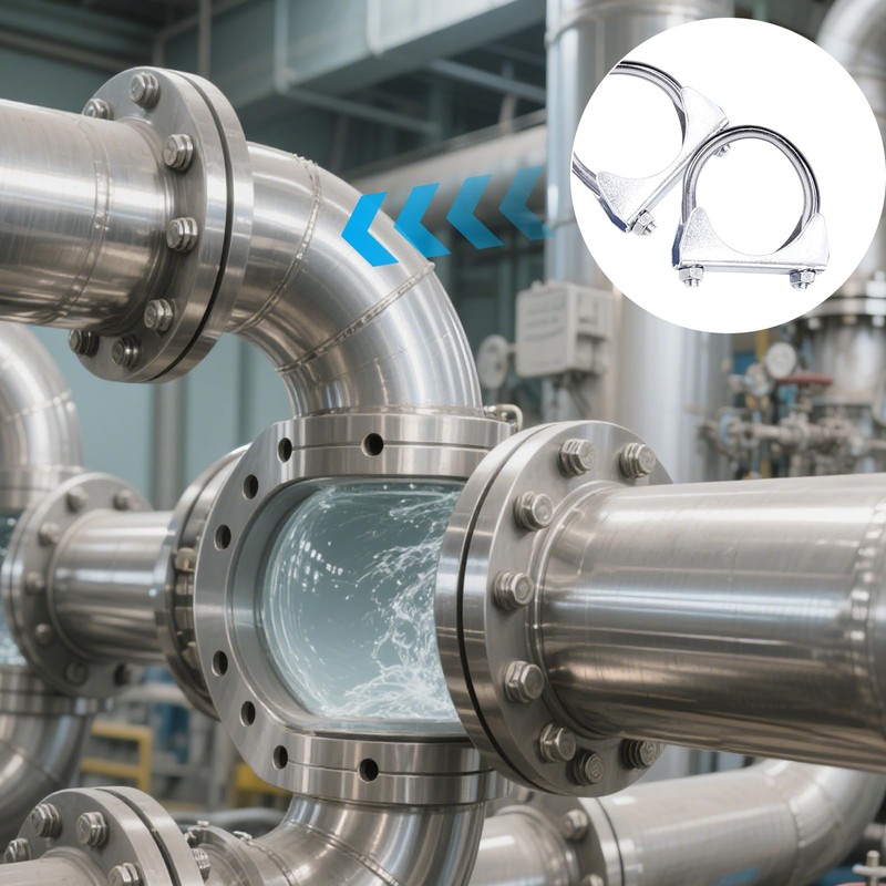 【Features】①Easy installation and removal without welding. ②U-shaped design for secure fit and easy handling. ③Versatile use in various exhaust repair scenarios. ④Durable construction for long-lasting performance.
