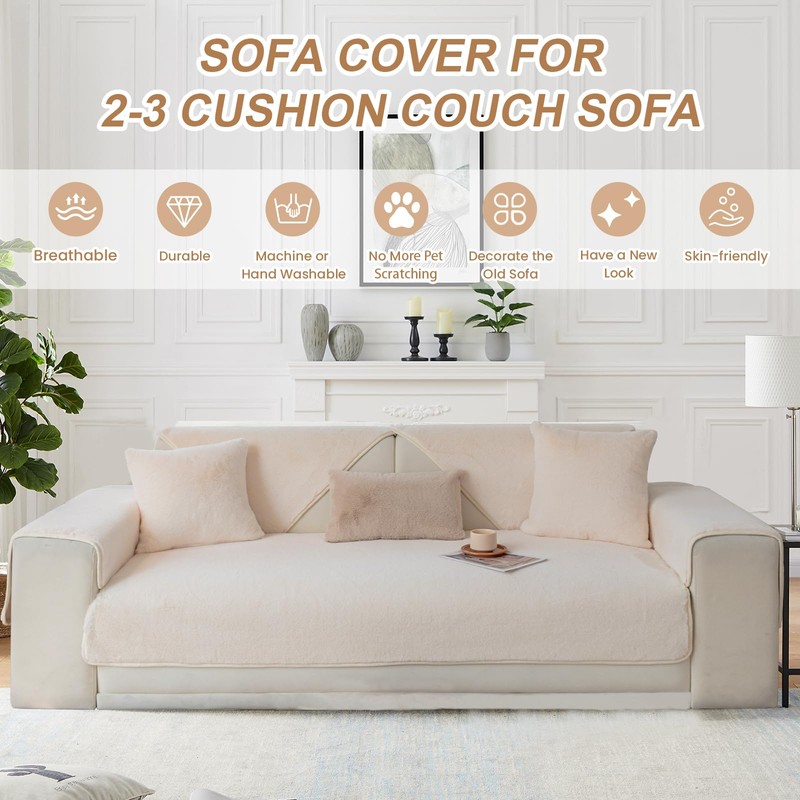 - 【Soft Mink Velvet Fabric】Super soft sofa cover is crafted from premium mink velvet fabric, which are soft to touch and smooth to make your sofa more comfortable and durable. Beyond just a couch cover, it’s versatile enough to be used as a seat cushion, pet cushion, bedroom rug, floor mat, window bench cushion, or play mat. Add a touch of elegance and practicality to any space with this all-purpose, soft, and stylish cover
