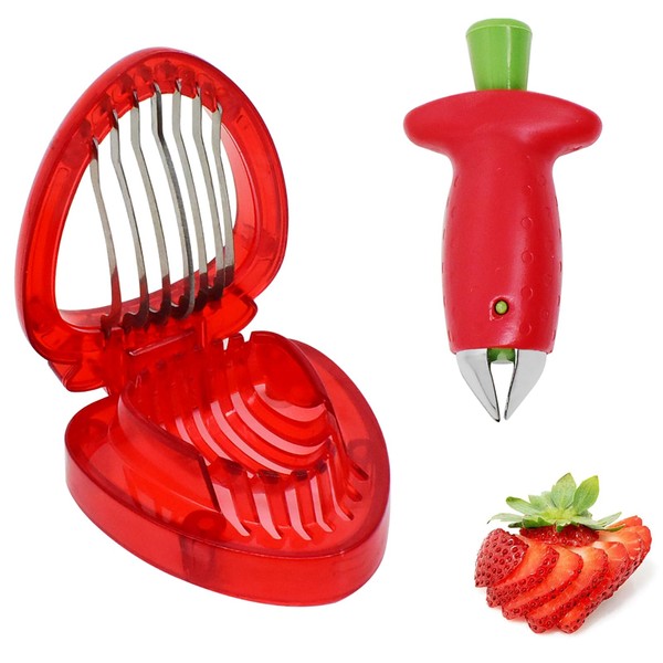 - Versatile and easy to use: This adorable strawberry sheller and strawberry slicer set is small and compact, making it easy to remove entire strawberry stems and leaves. Also suitable for most soft fruits, such as cherries/tomatoes/pineapples, etc. Give it a try and you'll be happy!