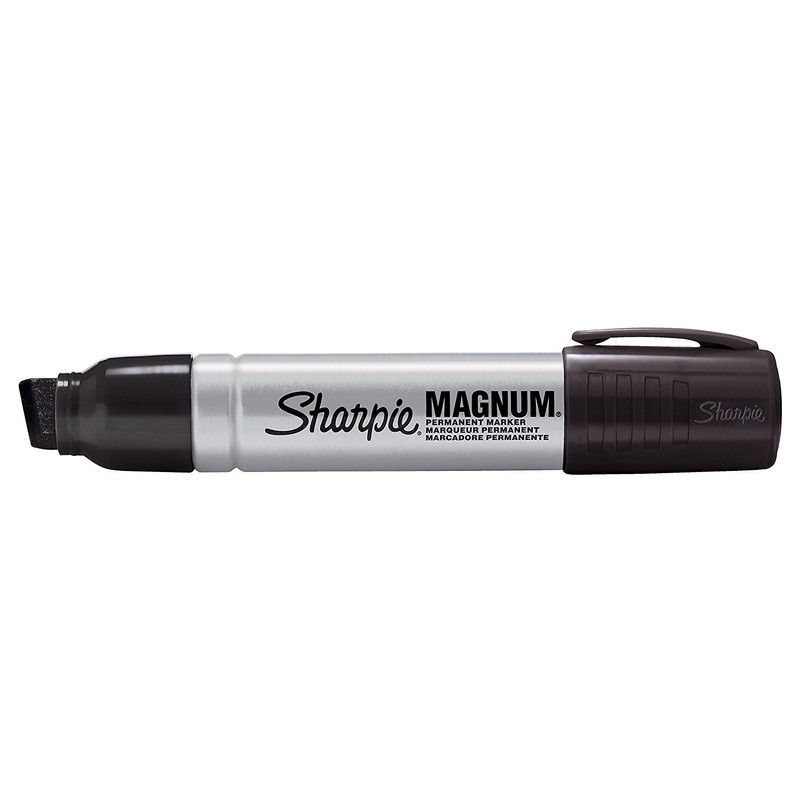 - For bold statements that need to go extra-wide, look to Sharpie Magnum Permanent Marker. This chisel marker includes an oversized tip for clear, precise, extra-wide marks.