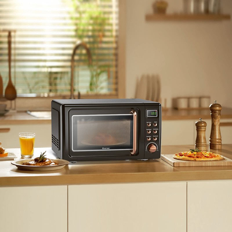 • Retro and High-End Look: This retro style microwave oven with rounded buttons and curved handle and vibrant colors matches perfectly with any kind of kitchen. It features several practical functions that could certainly satisfy your expectation towards a microwave.