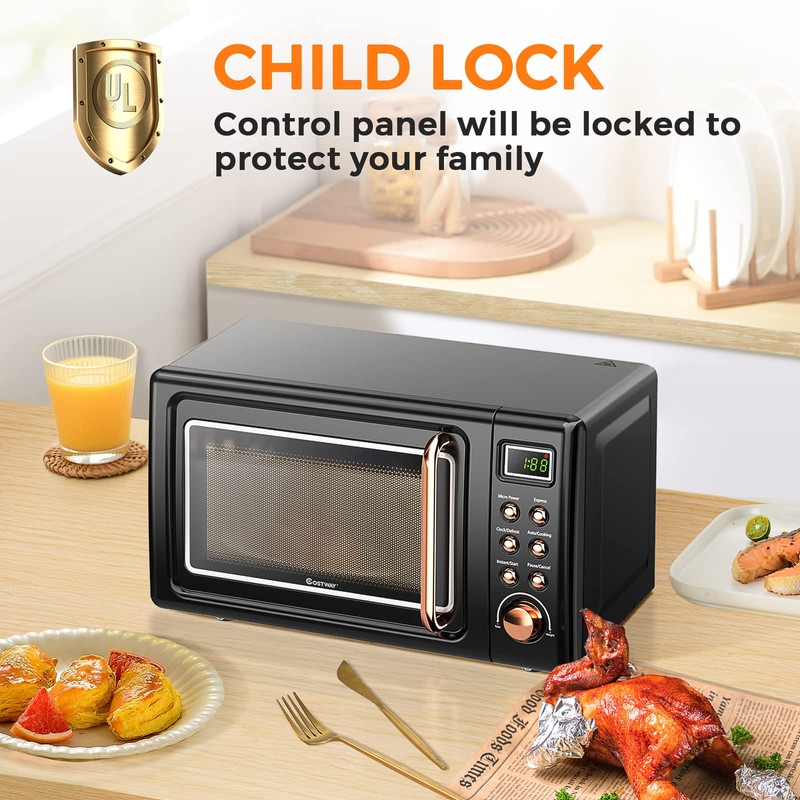 • Child Safety Lock: Child safety locks can effectively prevent children or others from accidentally using the microwave oven, thus eliminating all possible dangers. The compact size is ideal for apartment kitchens, vacation homes, offices and dorms.