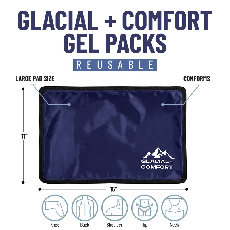 Glacial Comfort Large Gel Ice Pack for Injuries Reusable - (15" x 11") Cold Pads for Back Pain, Hip, Knee, Shoulder, Muscle Strains, Migraine & Postpartum Recovery, Flex Technology - Compression Pad.