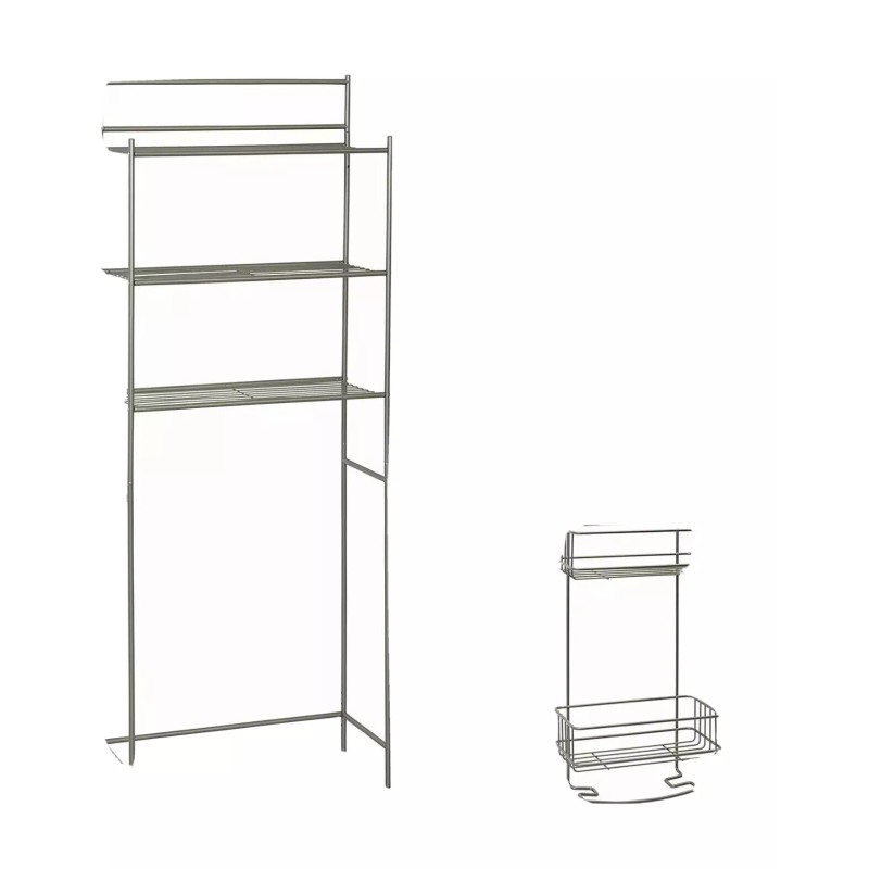 Glacier Bay 3-Piece Bath-in-a-Box Bath Storage Suite in Satin Nickel. Condition is New with tags. Shipped with USPS Parcel Select Ground.New, Only A Bit Damaged Box!