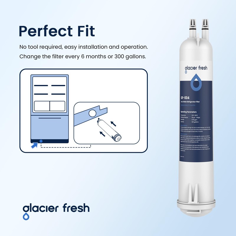 - Provide Fresh Water: GLACIER FRESH Replacement Water Refrigerator Filter can provide you with refreshing, delicious, and healthy water so that you can feel the taste of pure water no matter your drink, cook, brew coffee, or brew tea. Protect the health of you and your family and improve the happiness of life.