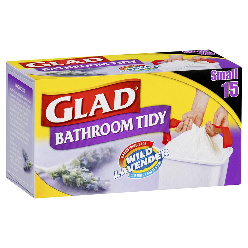 Glad Bathroom Tidy Drawstring Bags, Fits Small 12L Bins, Wild Lavender Scent, 15 Count