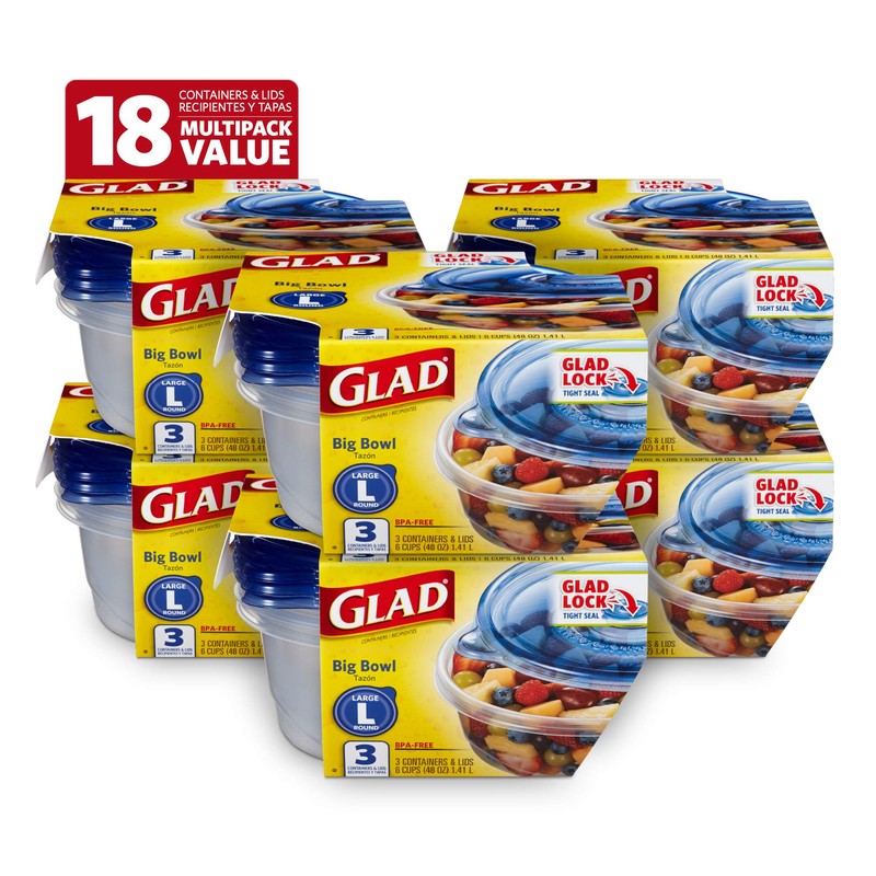 - CONTAINERS FOR EVERY NEED – GladWare comes in many shapes and sizes to suit your needs. Glad Big Bowl food storage can hold up to 48 ounces of food