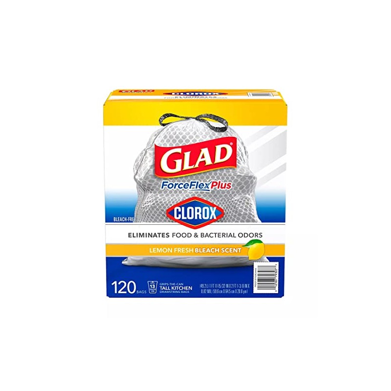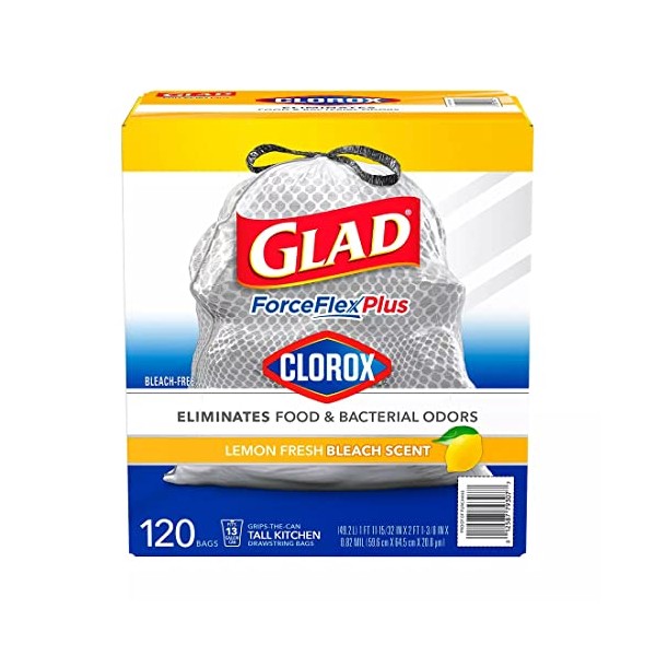 Glad ForceFlex Plus Tall Kitchen Trash Bags With Clorox, Lemon Fresh Bleach Scent (13 gal., 120 ct.)