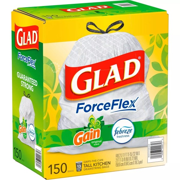 Glad ForceFlex Tall Kitchen Trash Bags, Gain Original Scent W/Febreeze 150ct