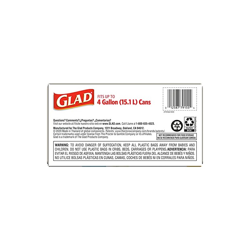 - CLEANING MADE EASY: Glad 4 gallon small trash bags supports an active household and provides a versatile plastic bag to tackle everyday demands