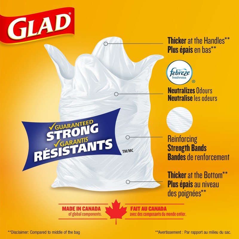 Glad White Garbage Bags - Small 25 Litres - Unscented, 48 Trash Bags, Made in Canada of Global Components