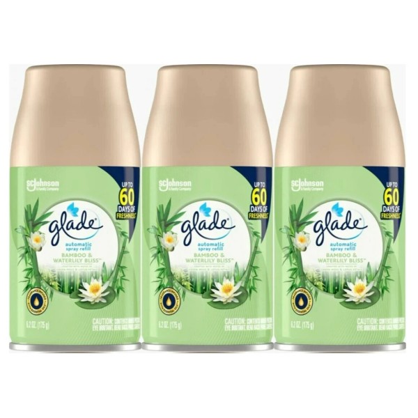 3 Pack Glade Automatic Spray Refill Bamboo & Waterlily Bliss Air Freshener 6.2oz
