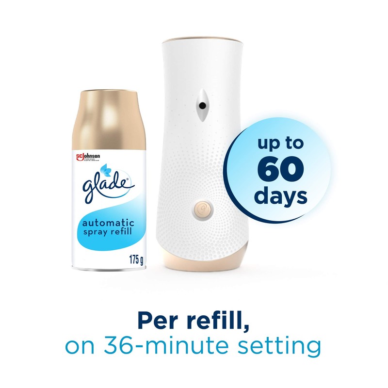 - Decorate the air with Glade automatic spray with notes of crisp air, fresh laundry, and lily of the valley