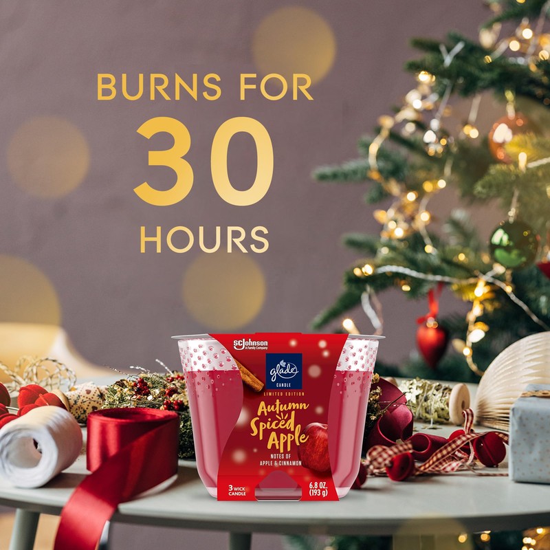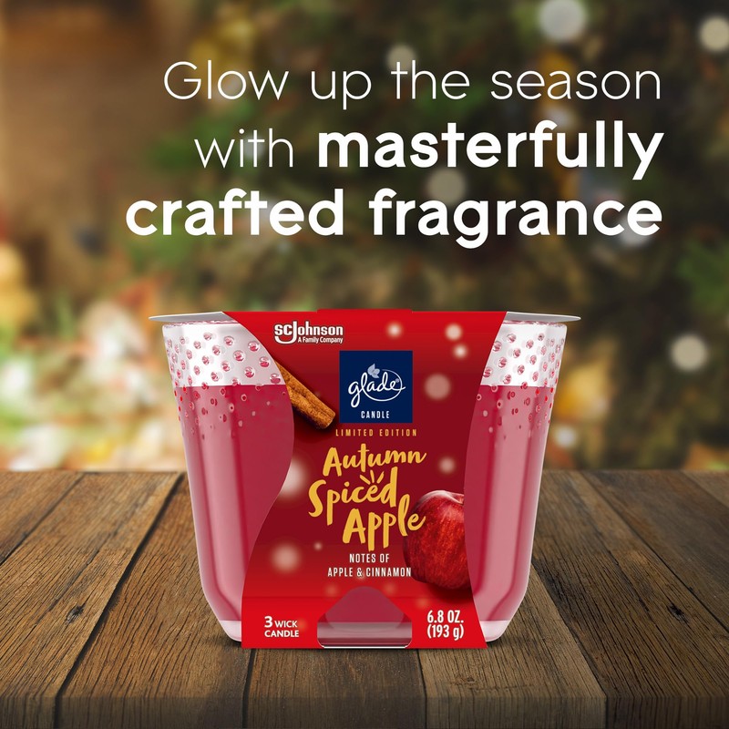 - Glow up the season with a Autumn Spiced Apple 3-wick candle, a limited edition fall-scented candle from the Glade Holiday Glow Collection.