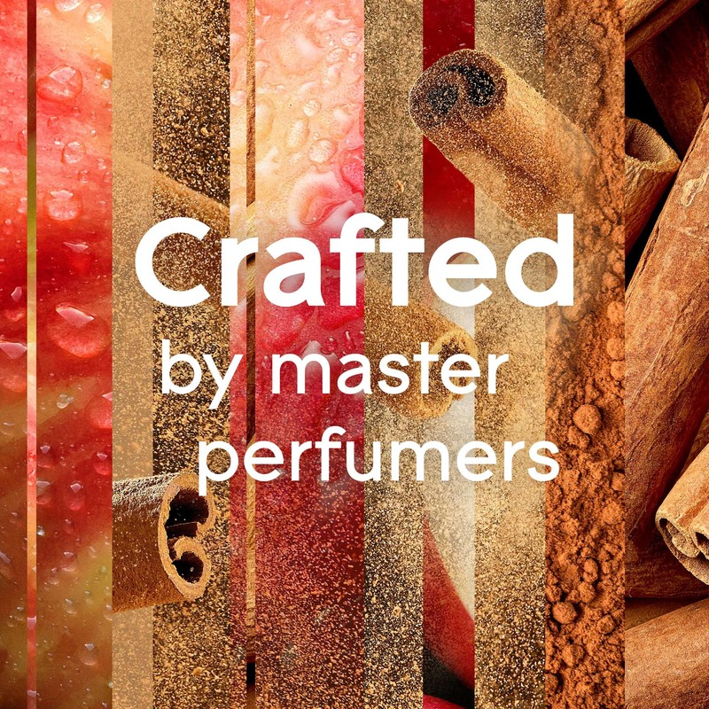 - Enjoy cozy vibes with a fragrance that blends baked apple, cinnamon and nutmeg to create an indulgent mood for luxurious comfort; the fragrance of this scented candle is crafted by master perfumers and include fragrance infused with essential oils.