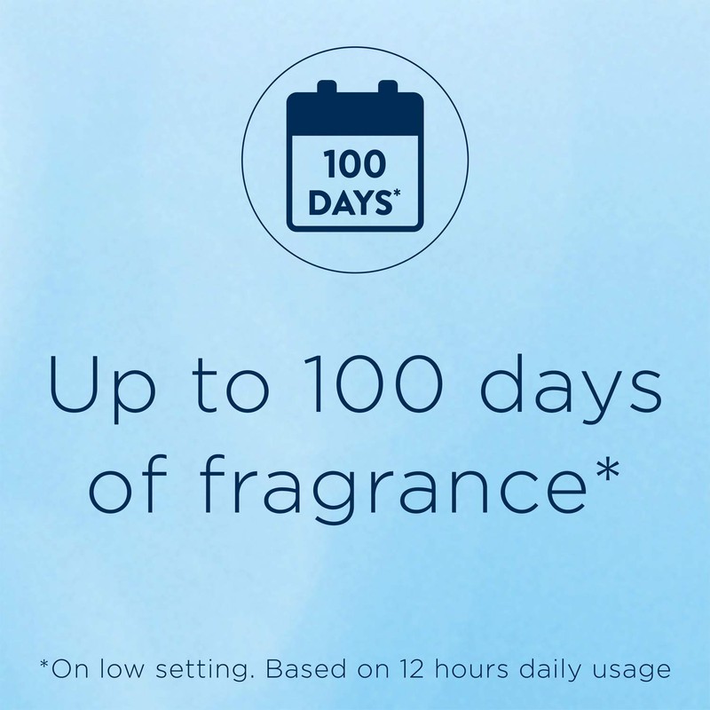 - Plug in the new, redesigned, adjustable plugin air freshener for up to 100 days of continuous diffused fragrance *based on low setting