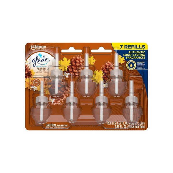 Glade PlugIns Scented Oil Refill, Cashmere Woods, 0.67 Fl. Oz., 7/Pack (350769)