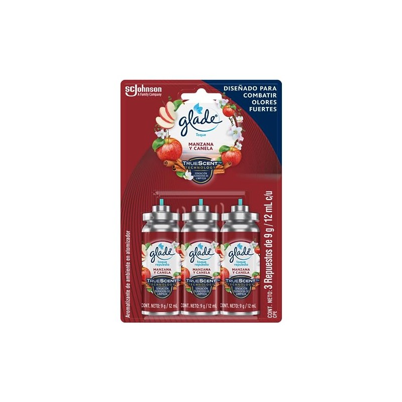 🌟 ⭐ Glade Repuestos para Toque Atomizador, Aromatizante para Hogar, Aroma Manzana y Canela, 3 Repuestos de 9g c/u ⭐ 🌟