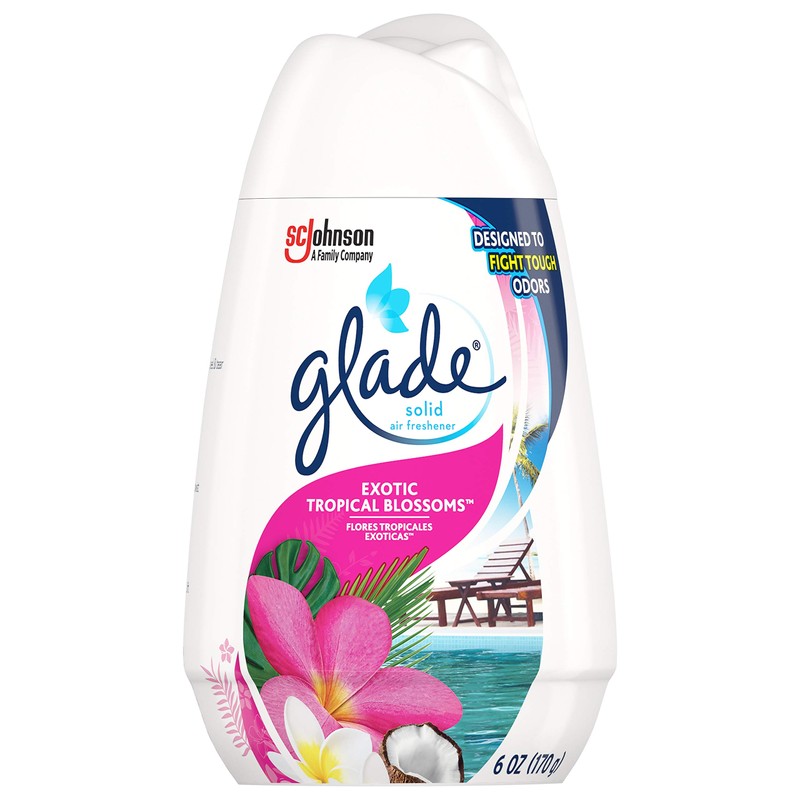 - Glade Exotic Tropical Blossoms Solid Gel Cone Air Freshener will instantly transport you to your own slice of paradise