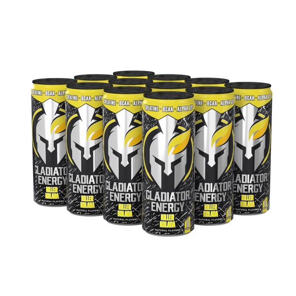 Gladiator Energy Drink, Sugar-Free, 12 Pack, Killer Kolada, 12oz Cans, with Creatine, BCAA, and 250mg Caffeine