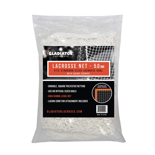Gladiator Lacrosse 5mm Replacement Lacrosse Goal Net 6'x6'x7' - Heavy Duty Backyard Practice Net (High School Grade) Square Corners, White