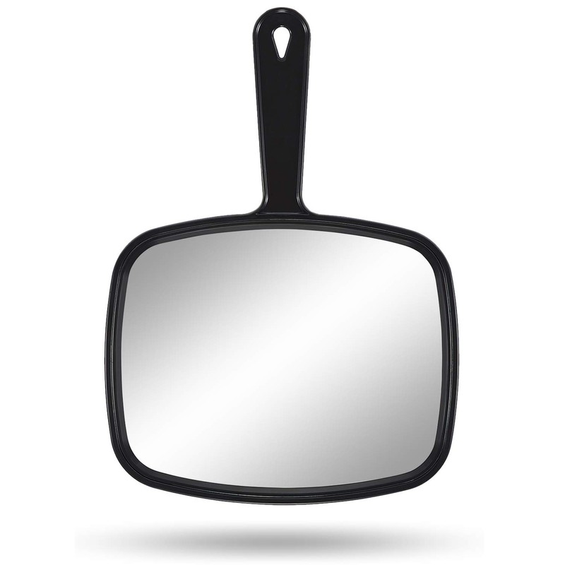 PROTECLE Hand Mirror, 10.3" L x 7.4" W Salon Barber Hairdressing Handheld Mirror with Handle, Square Black
