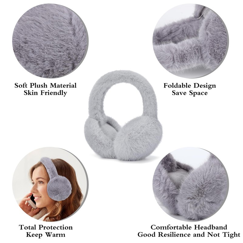 GLAITC Ear Muffs for Women,Winter Ear Warmers,Women Earmuffs Faux Fur for Winter Adjustable Ear Muffs for Cold Weather,Winter Gift for Women Men Girls (grey)