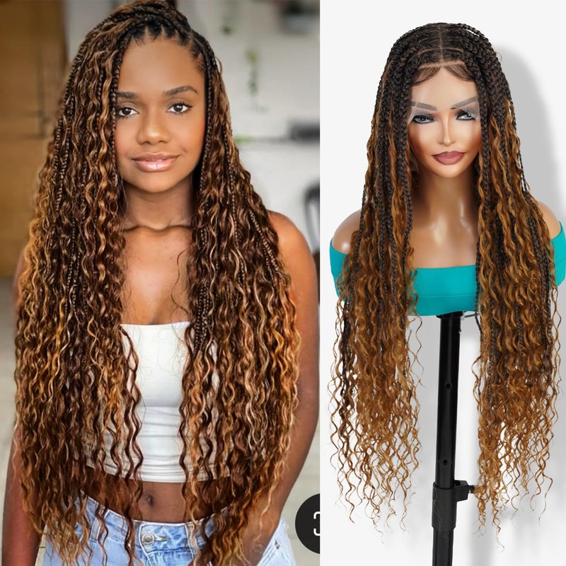 - Pre-Braided & Ready to Wear – Authentic GLAM21USA full lace braided wig with medium knotless Boho box braids in deep twist style for a natural, salon-fresh look.