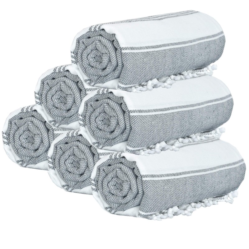 GLAMBURG Peshtemal Turkish Towel - Beach Towels Oversized 36x71 Set of 6, Soft Durable Absorbent Extra Large Bath Sheet Hammam Towel for Adults - Charcoal Grey