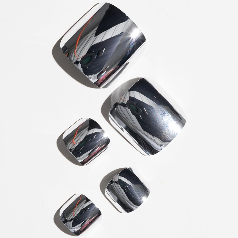 GLAMERMAID Press on Toenails,Metal Silver Toenails Press ons with Design,24 Pcs Glossy Glue on Toe Nails for Women Girls,Reusable Acrylic Stick on Toenails for Spring Summer